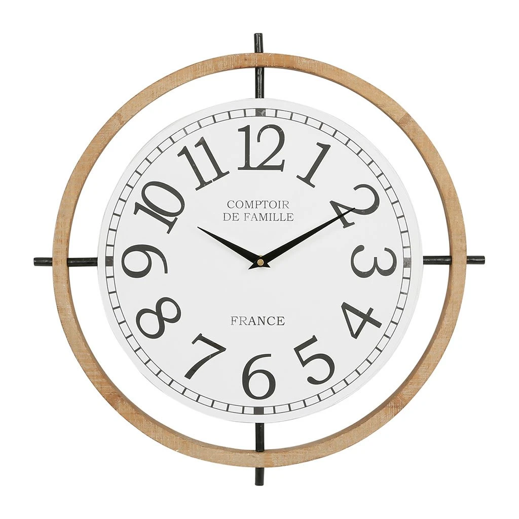 Venez découvrir notre Horloge murale chez gaston naturel d50cm sapin+fer de la marque Comptoir de Famille à découvrir sur Fabrique de Styles.