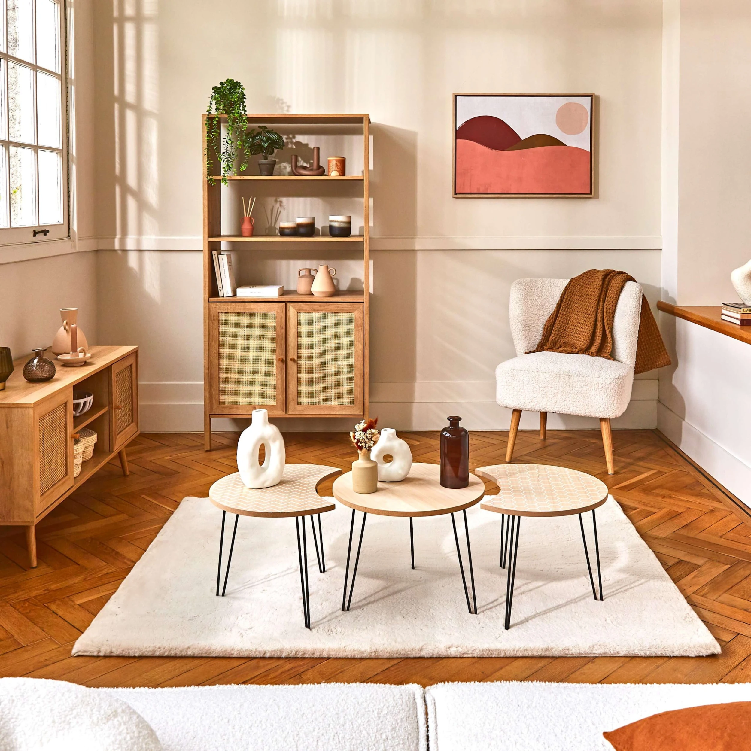 Le lot de 3 tables basses Audry a un style bohème scandinave que vous allez adorer !