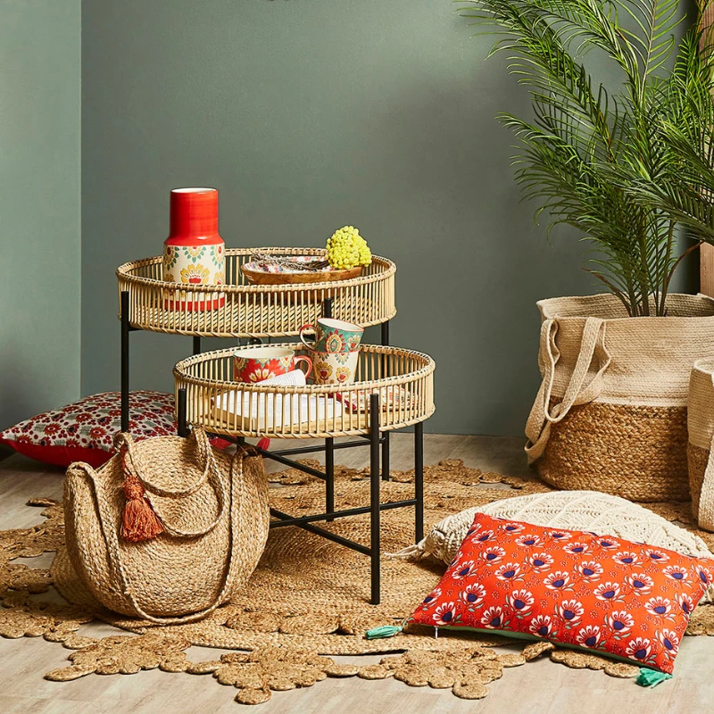 Elle est dotée d’un plateau rond en bois de Bambou, ce qui vous permet d’y déposer des magazines, des boissons ou même des encas.