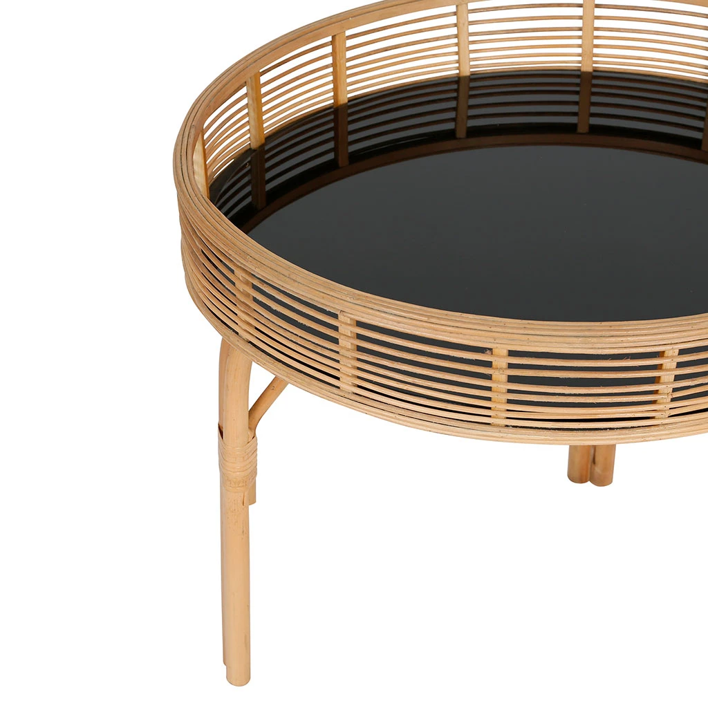 Le bois naturel et son plateau en verre noir, c’est la touche rétro bohème que l’on adore.