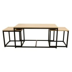 Home Déco Factory Table Basse Gigogne (lot De 3) En Plaqué Bois Et Fer Noir – Selya