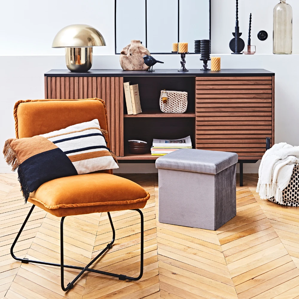 C’est le fauteuil parfait pour une bibliothèque, ou un coin détente dans le salon. Les pieds en fer industriel lui donnent une touche contemporaine