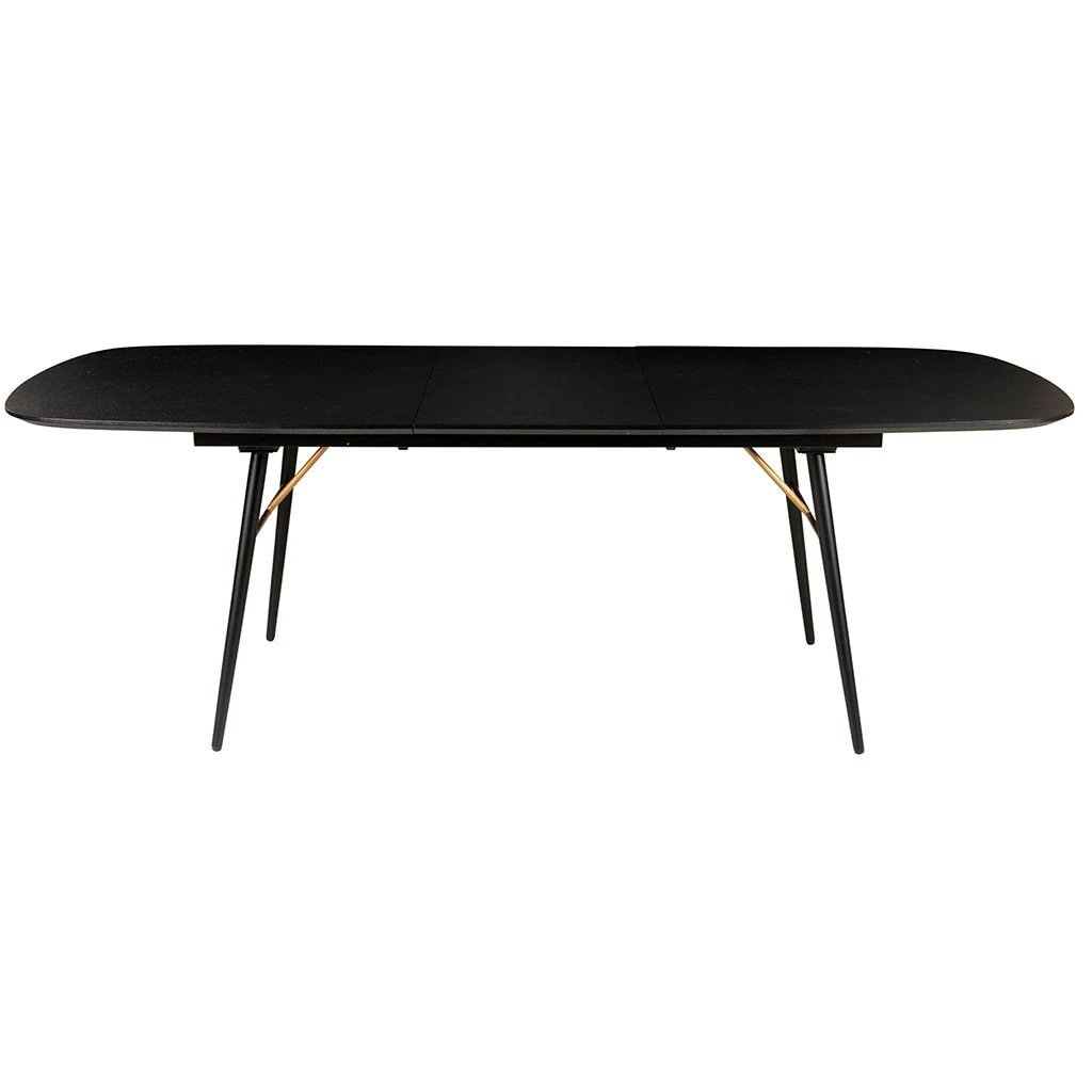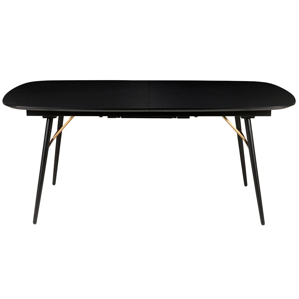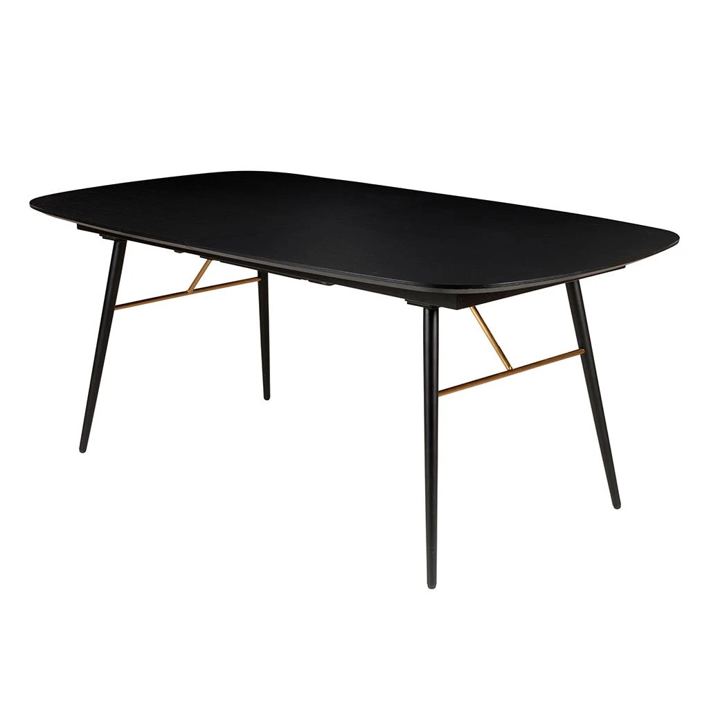 Plateau et allonge : placage chêne – peinture polyuréthane / Pieds : fer, peinture polyuréthane et acier chromé doré
